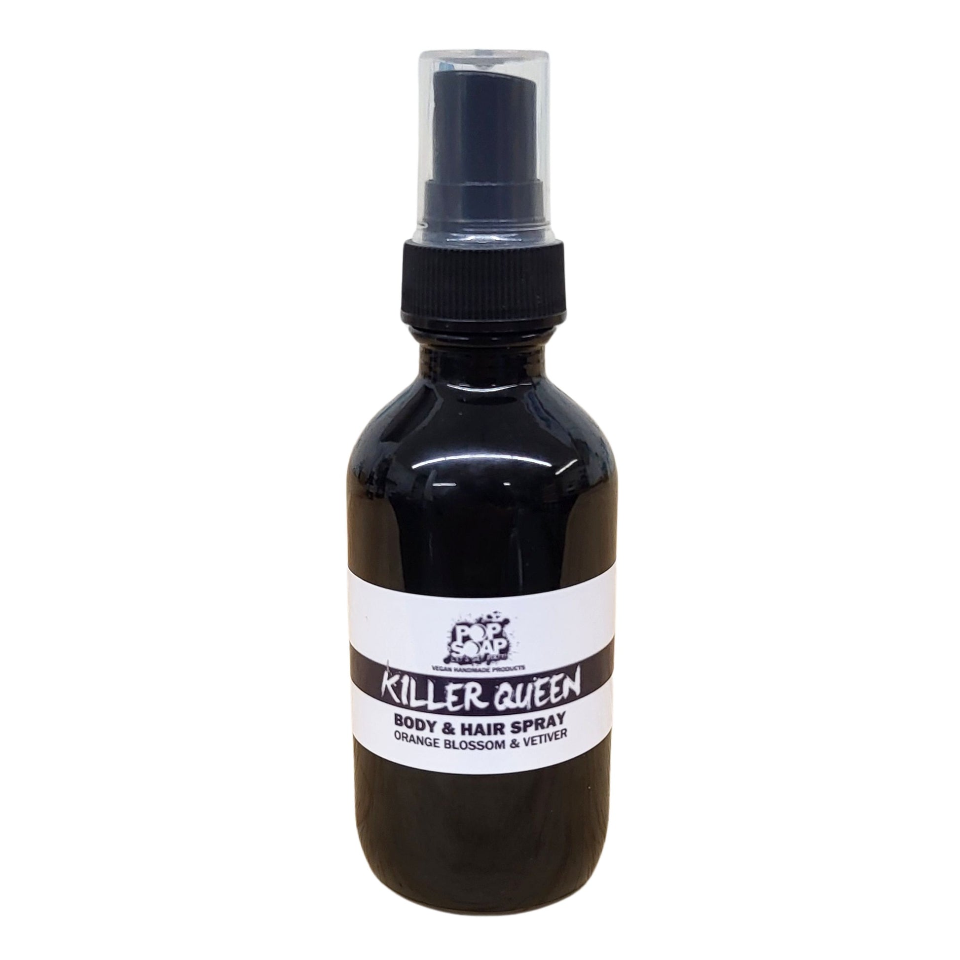 Made with natural fragrance oils and vegetable alcohol, it’s skin-safe, hair-safe, and crafted for anyone who wants to smell like royalty with a little rock-and-roll bite.