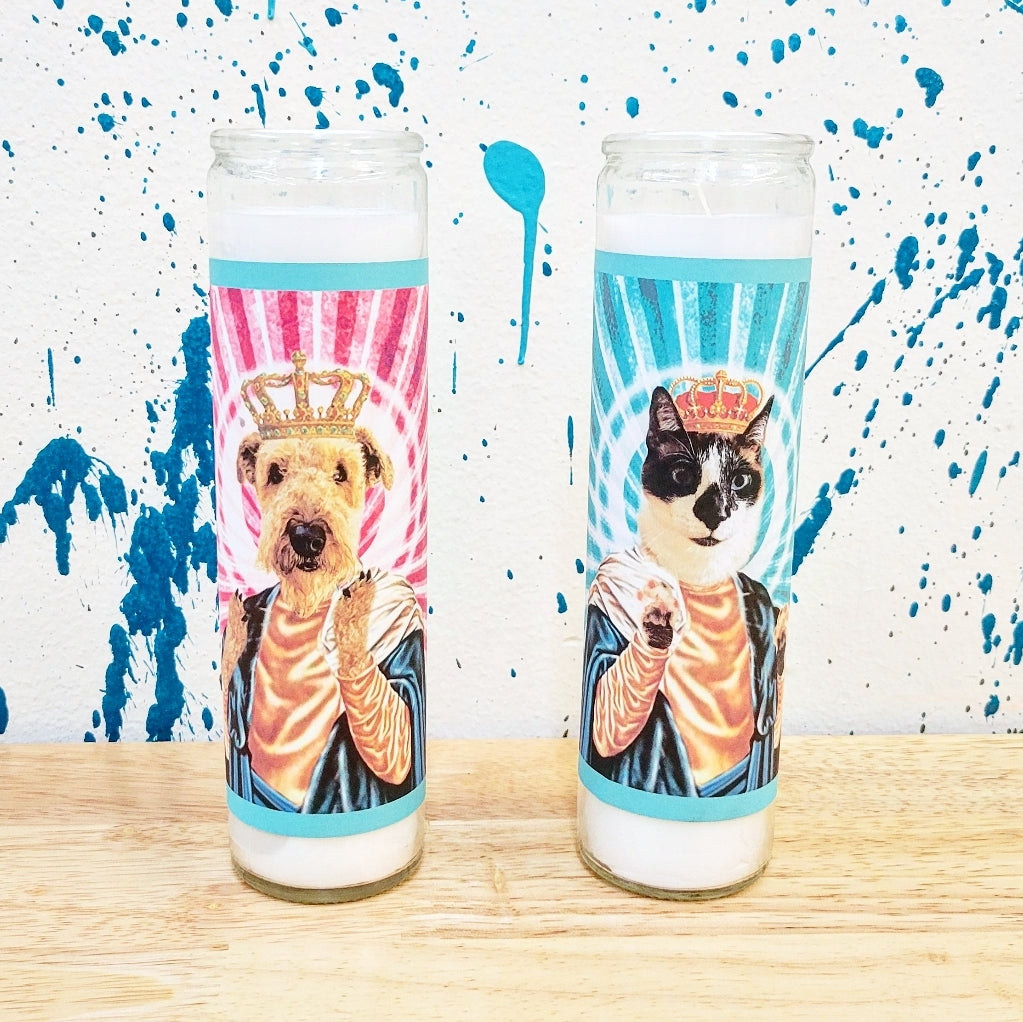 Let your light shine with your own Custom 8" Pet Candle. Pricing includes a non-refundable $10 design fee. We'll work with you to create a candle featuring yourself or a person of your choosing.